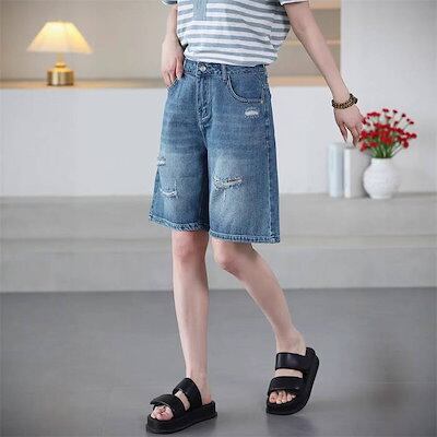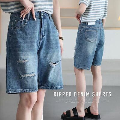 デニム短パン デニムパンツ 短パン レディース 夏 涼しい 5分丈 5分丈パンツ ハーフパンツ レディース ショートパンツ ボトムス ジーンズ コットン ズボン ポケット リラックス ハイウエスト カ