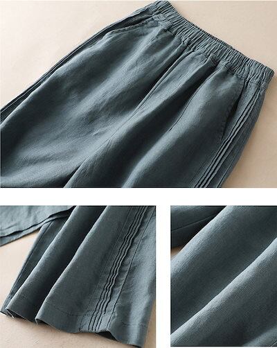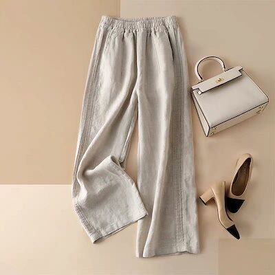 ワイドパンツ レディース 綿 麻 リネンパンツ 春 夏 タック ウエストゴム ハイウエスト ロング パンツ ストレート ポケット付き コットン ゆったり オフィス ボトムス ワイド 無地 ホワイト ブ