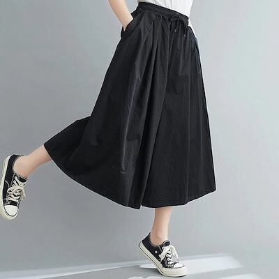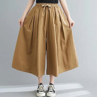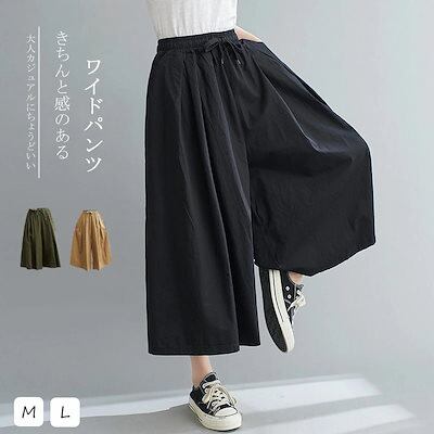 ワイドパンツ レディース パンツ ボトムス オーバーサイズ 無地 ガウチョパンツ 春 秋 夏 大きいサイズ ウエストゴム ハイウエスト 体型カバー 着痩せ 体型カバー ゆったり 秋 美脚 カジュアル