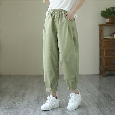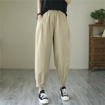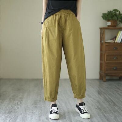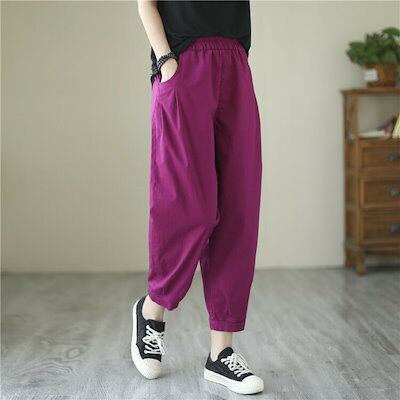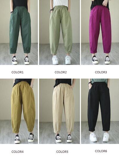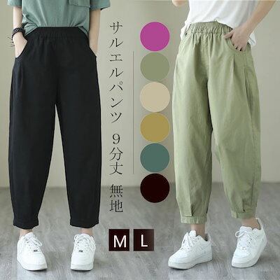 サルエルパンツ レディース 夏 春 秋 テーパードパンツ ロング丈 無地 綿 タック ロングパンツ ポケット付き パンツ 9分丈 ウエストゴム ハイウエスト ボトムス ゆったり バルーンパンツ カジュ
