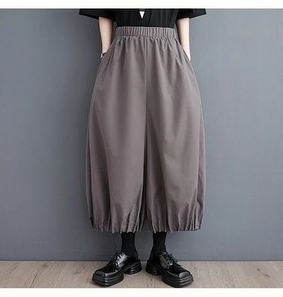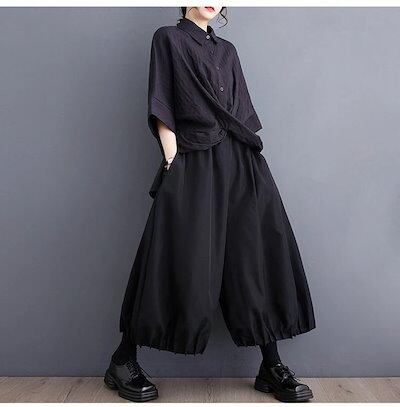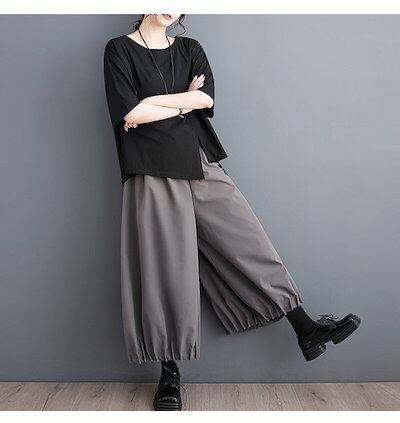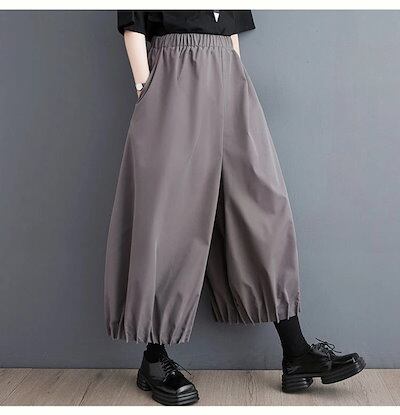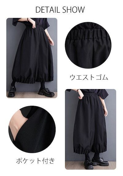 バルーンパンツ レディース ワイドパンツ ウエストゴム ハイウエスト 9分丈 無地 タック ギャザー パンツ ポケット付き ボトムス ゆったり カジュアル ガウチョパンツ 通勤 オフィス イージーパン