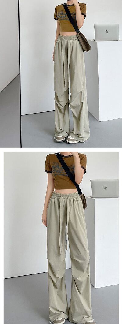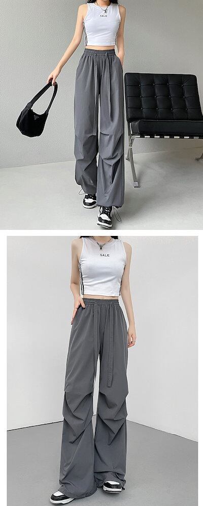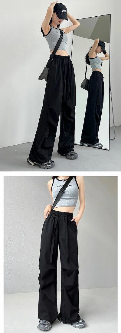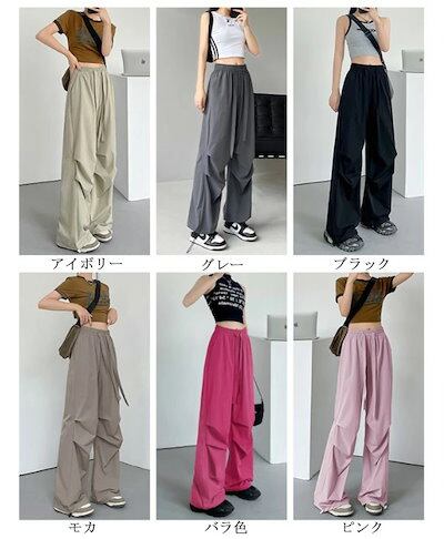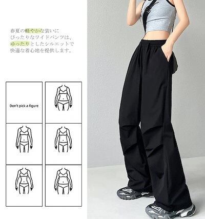 ストレートパンツ レディース 夏 春 ワイドパンツ ハイウエスト タック ウエストゴム パンツ 高身長 低身長 ポケット付き ボトムス ワイド 無地 ブラック アイボリー ロングズボン ゆったり カジ