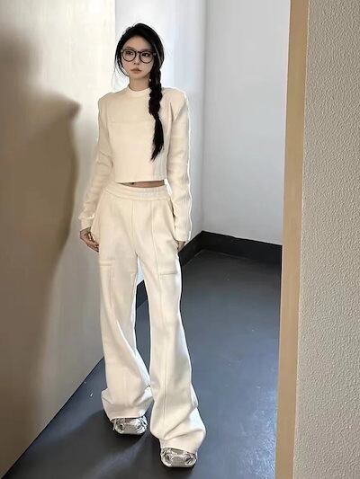 セットアップ 涼しく楽ちんセット 2025 春 新作 スウェット上下セット ショート丈 スウエット ワイドパンツ 2点セット セットアップ レディースファッション 韓国ファッション