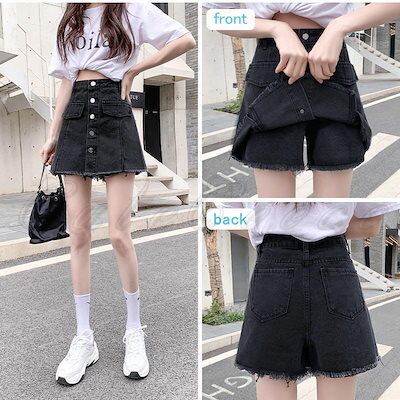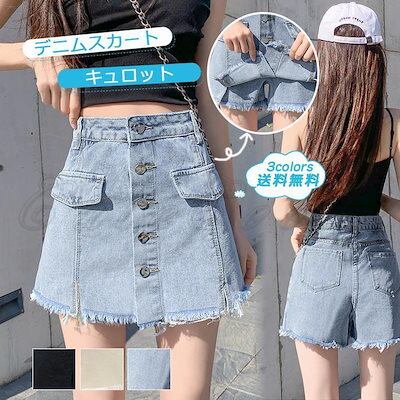 デニムスカート キュロット レディース ミニ丈 無地 タイトスカート パンツ付きスカート チラ見せ防止 ショートパンツ ボトムス 夏 春秋 きれいめ