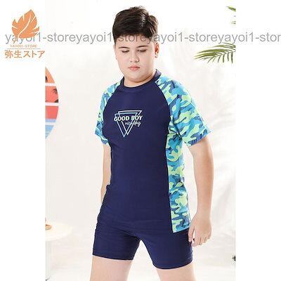 男の子 水着 ジュニア ぽっちゃりの子 大きいサイズあり キッズ セパレート 上下セット 水着 半袖 ボーイズ 子供 ショートパンツ ゆったり プール