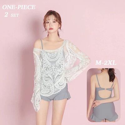 水着レディース体型カバービキニワンピース2点セットレース羽織りラッシュガード体型カバー水着セットアップショートパンツ203040ミセスセクシーママ女性用長袖透け流行かわいいカバー女の子スイムウェア