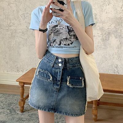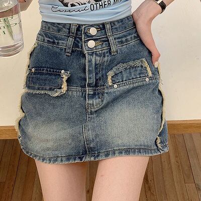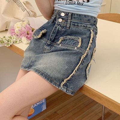 ラッフルミニ アメカジ デニム 半端丈 スカート レディース 夏 ハイウエスト 麻 パッケージ ヒップスカート Aライン ショート丈 スカート パンツ スカート