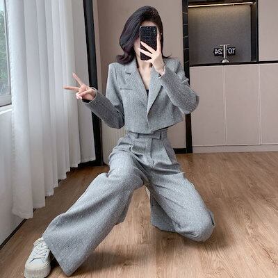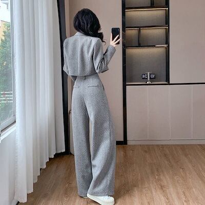 スーツセットアップ 卒業式?入学式 ダイヤモンド ファッション スーツ レディース 春秋 ショートジャケット ワイドパンツ 2点セット 新生活応援ビジネス特集