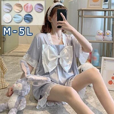 寝間着 ショーパン 大きいサイズ 部屋着 半袖 5L 春 上下セット ぽっちゃり かわいい レディース ビッグリボン コットン 超大きいリボン 夏 女性 パジャマ ショートパンツ レディ ルームウェア