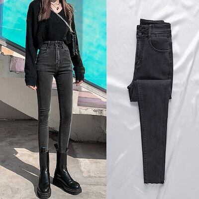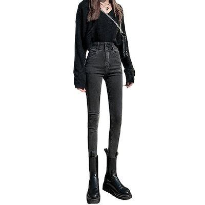 脚長効果!スキニーパンツスキニーパンツ レディース ハイウエストジーンズ 女性 2025年秋冬新作 薄手スモークグレー スリムスキニー 足痩せ