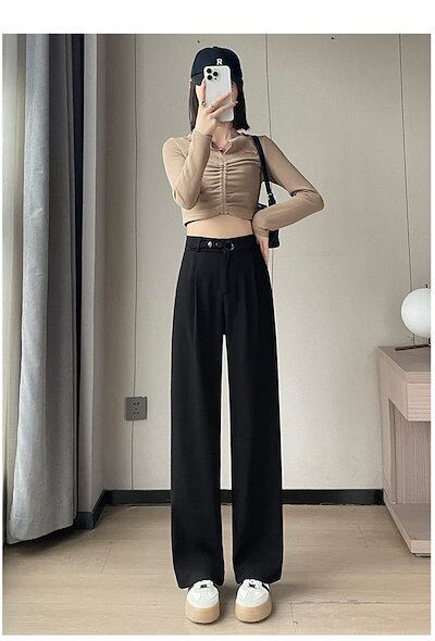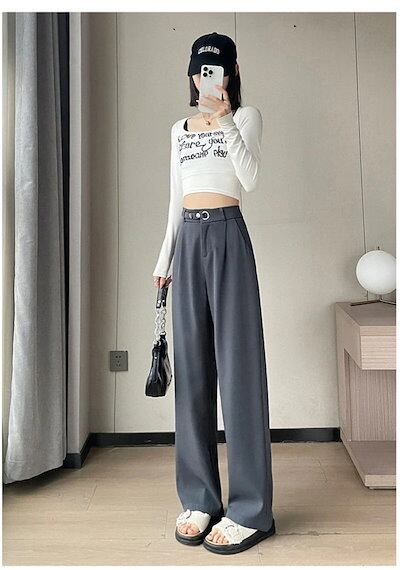 大人気 品質保証ハイウエスト ワイドパンツ ストレートパンツ 美脚 脚長 レディース ボタンストラップ きれいめ ワイドパンツ ボトムス 長ズボン ロングパンツ スリム ウエストゴム ゆった