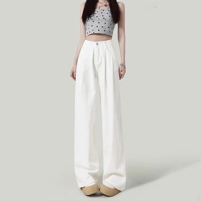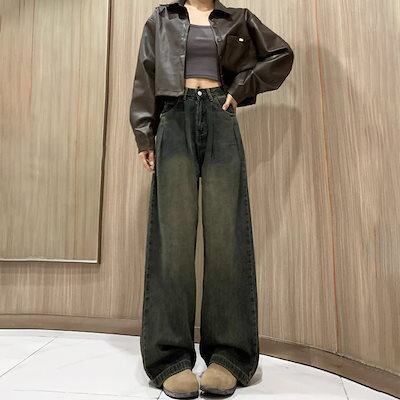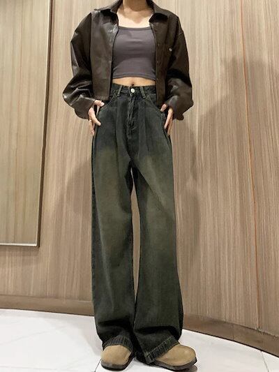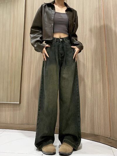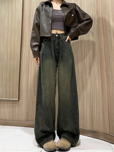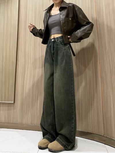 ワイドレッグジーンズレディース春秋服2025年新作セメントグレーレトロハイウエストスリムスリムストレートパンツ