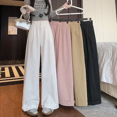 パンツ レディース ハイウエスト ストレートパンツ カジュアルパンツ レディース 春新作 ルーズ スリム オールマッチ ワイドレッグパンツ ズボン