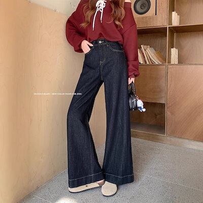 2025年春新作韓国風ブラックゴールドワイドレッグジーンズレディースハイウエストスリムストレートレッグオールマッチパンツ