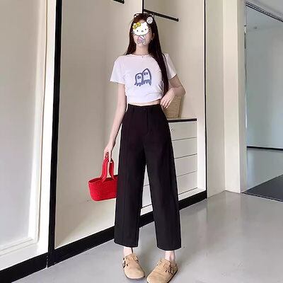 カジュアルパンツ プラスサイズ レディース 服 2025 秋 痩せ型 太った女の子 mm ハイウエスト スリム 洋ナシ型 ストレート 9点パンツ