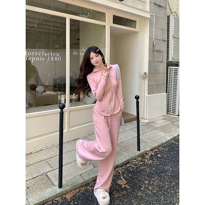 2025 大きいサイズ 秋 スリムフィット レディース 長袖 フード付き セーターパンツ カジュアル ツーピースセット
