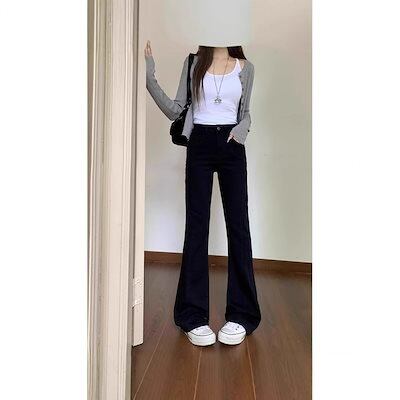 レディース用ブラックフレアジーンズ 2025年秋新作 ハイウエスト スリムパンツ スモールカジュアルモップパンツ