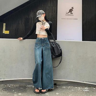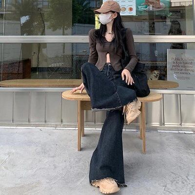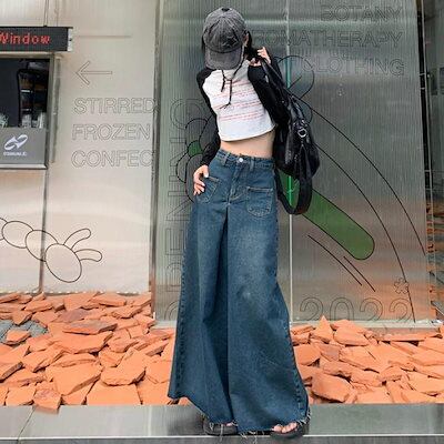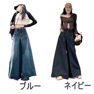 デニムパンツ ワイドパンツ デニム レディース バギー フレア 韓国ファッション ジーンズ Gパン ズボン 20代 30代 40代 50代