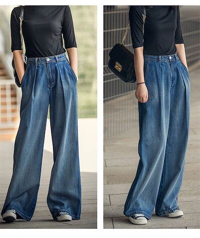 デニムパンツ ワイドパンツ 春 レディース ジーンズ ジーパン ゆったり バギー ボトムス チノパン 大きいサイズ カジュアル ズボン ウエストゴム 大きいサイズ 柔らかいデニム ゆったり 体型カバー