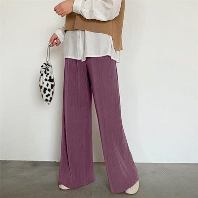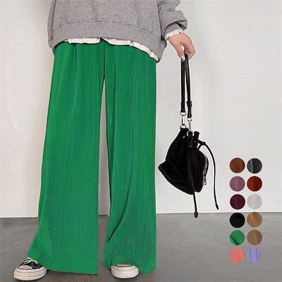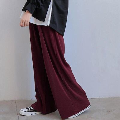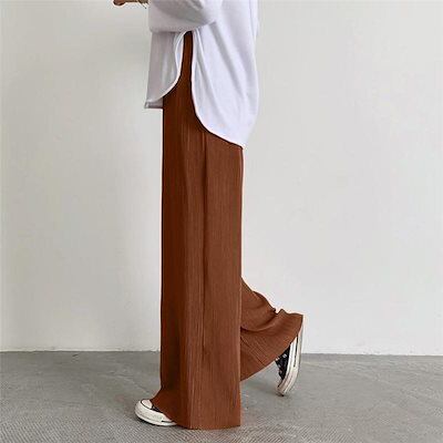 ワイドパンツ 春 夏 秋 レディース プリーツパンツ スカート風 ロング丈 セルフカット バギーパンツ カジュアル リラックス ゆったり 無地 ルームウエア