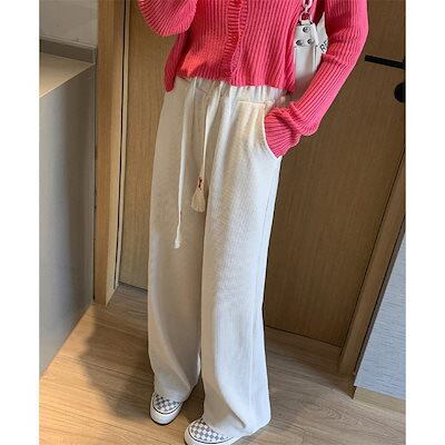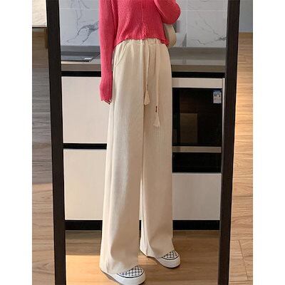ワイドパンツ 春 夏 秋 レディースコーデュロイ バギーパンツ シンプル ボトムス ストレート 楽ちん お洒落 履きやすい ゆったり リラックス 柔らかい ゴム付き