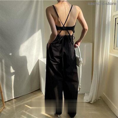 サロペット オーバーオール レディース ワイドサロペット パーティー バックシャン バギー オールシーズン カジュアル ゆったり オシャレ 着痩せ