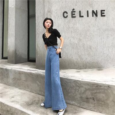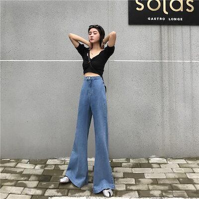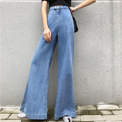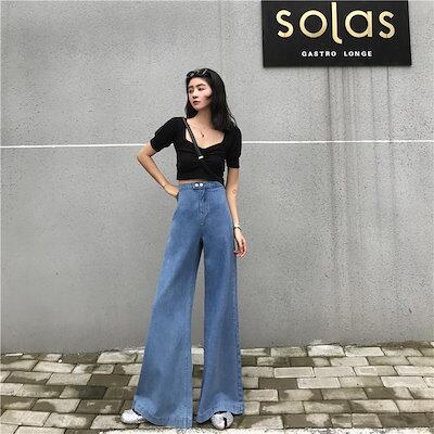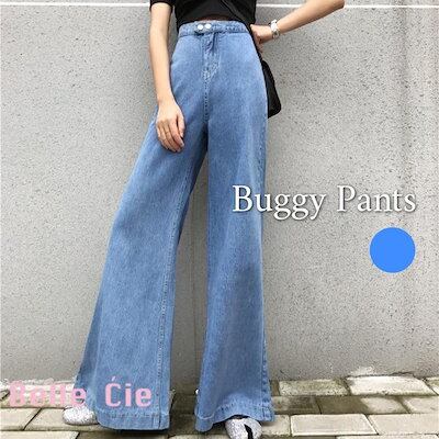 デニム バギーパンツ レディース 韓国ファッション 脚長効果 ワイドシルエット ロングパンツ