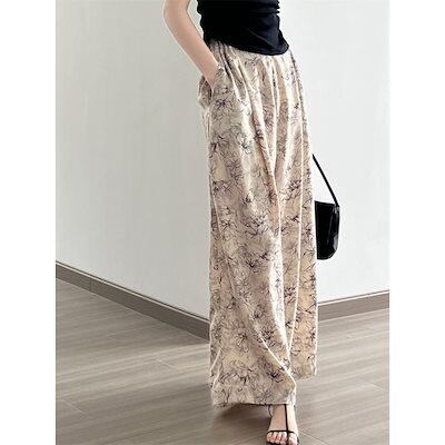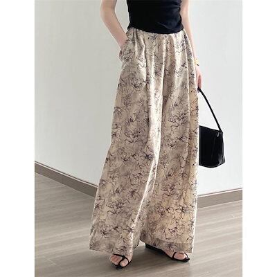 夏 ロングパンツワイドパンツ 花柄パンツ レディース 夏 ガウチョパンツ フレアパンツ ロングパンツ リゾート 花柄 バギーパンツ 大きいサイズ ゆったり シフォン リラックス