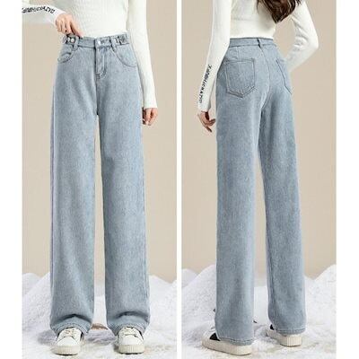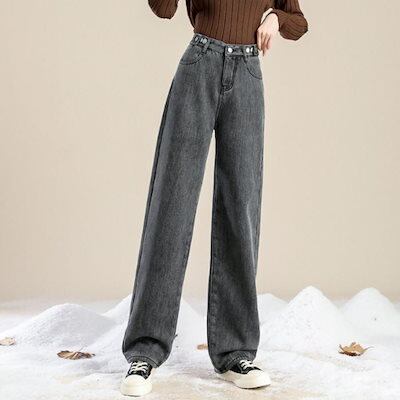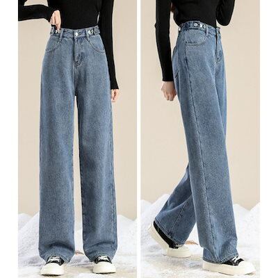 デニムパンツ 裏シャギー デニムパンツ ジーパン レディース 裏起毛 ジーンズ ワイドパンツ ゆったり ワイド ストレート バギー ハイウエスト パンツ 裏ボア