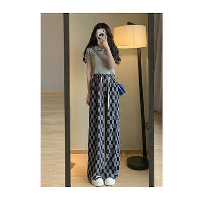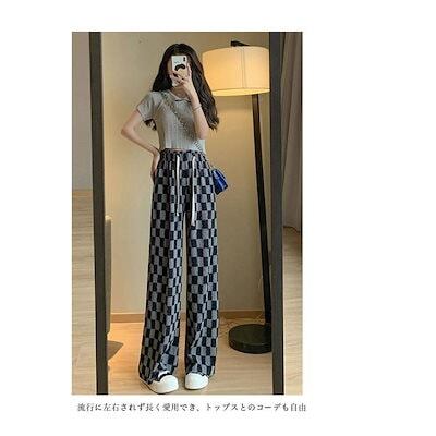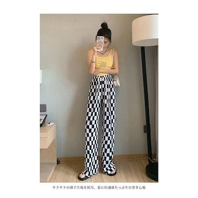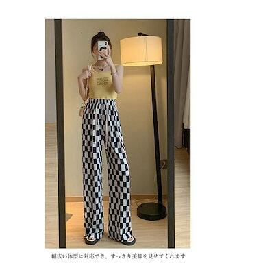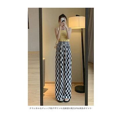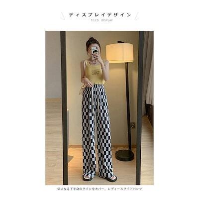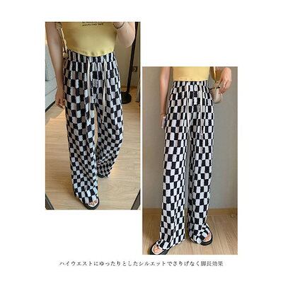 ワイドパンツ 春 夏 秋 レディース チェック柄 イージーパンツ 薄手 夏 サマーパンツ ゆったり 体型カバー バギーパンツ ウエストゴム カジュアルパンツ