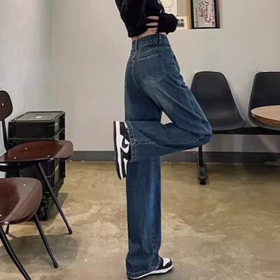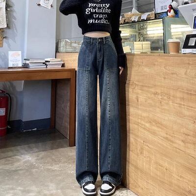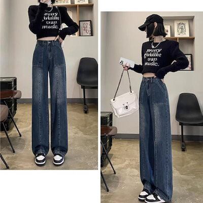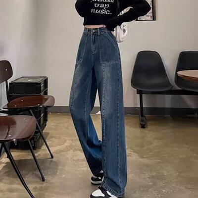 デニムパンツ ロングパンツ ワイド バギー ポケット ストレート レディース 韓国ファッション シンプル 大きいサイズ XXL 体型カバー シンプル