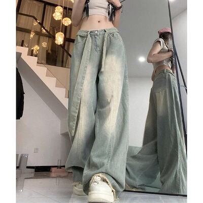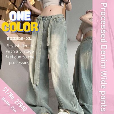 デニムパンツ ワイド バギー ロング ゆったり サンド 太め レディース 韓国ファッション 大きいサイズ ストリート ヒップホップ 体型カバー 衣装