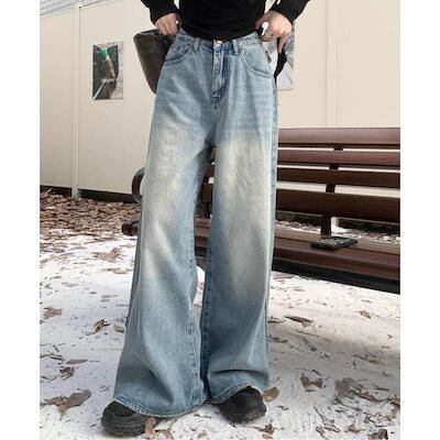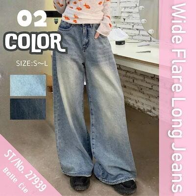 バギーパンツ デニムパンツ ロング ワイド バギー フレア デニム 太め ゆったり レディース ジーンズ ジーパン ワイドデニム パンツ