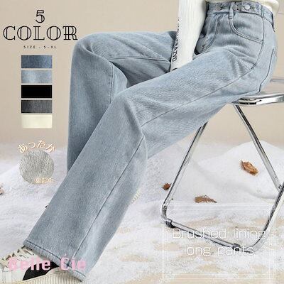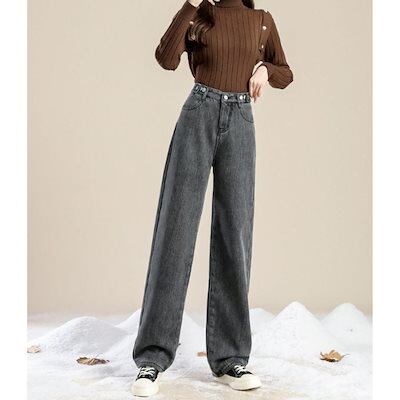 裏シャギー デニムパンツ ジーパン レディース 裏起毛 ジーンズ ワイドパンツ ゆったり ワイド ストレート バギー ハイウエスト パンツ 裏ボア