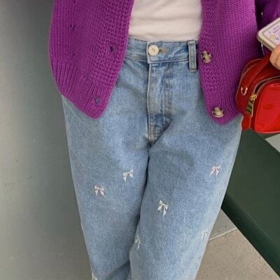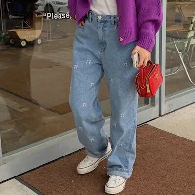 新品更新 [高品質]ロングパンツ デニム シンプル カジュアル お出かけ リボン かわいい レディース【大きいサイズ レディース 春夏 下着 ボトムス ストレート スキニー ショーツ pants】