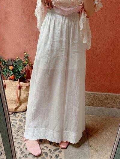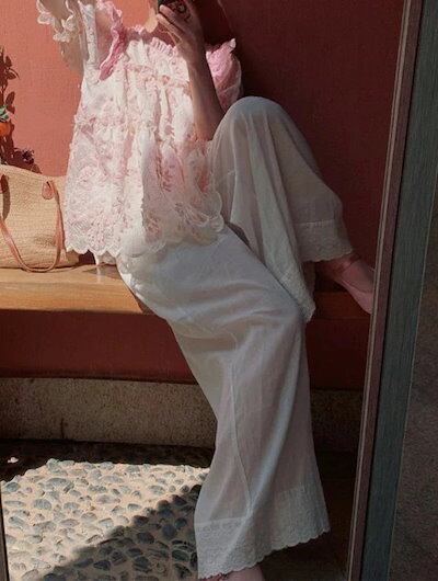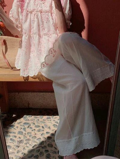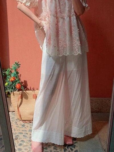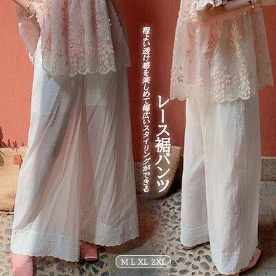 新品更新 注目商品レディース ワイドパンツ 綿混 レース裾 ウエストゴム ロング 重ね着 透け感【大きいサイズ レディース 春夏 下着 ボトムス ストレート スキニー ショーツ pants】