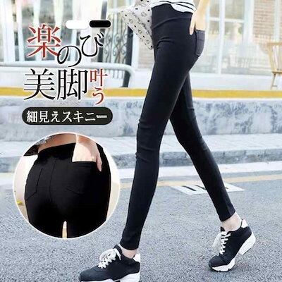 【急速出荷!】レディース黒スキニーパンツ超伸縮ストレッチボトムスレギパンハイウエスト無地脚尻今日は30パーセント