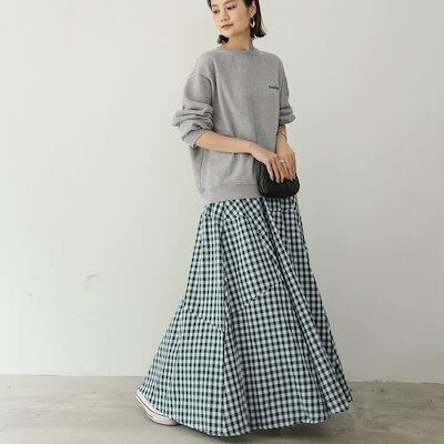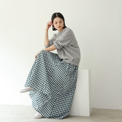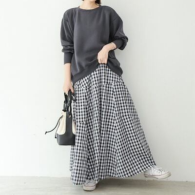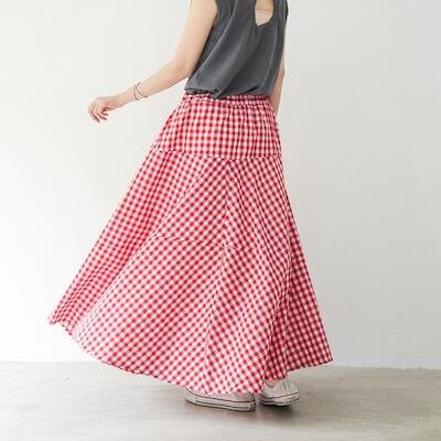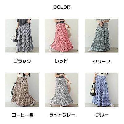 【即納】スカート レディース ロングスカート ロング丈 マキシ丈 チェック柄 ウエストゴム ボトムス Aライン ラフ 大人 可愛い カジュアル おしゃれ 夏
