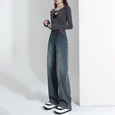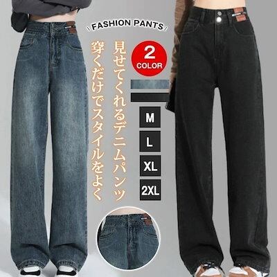 【即納】デニム レディース パンツ ジーンズ デニム ボトムス 美脚 ハイウエスト ワイドパンツ パンツ 体型カバー 春 夏 秋 ジーパン 20代 30代 40代 50代