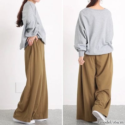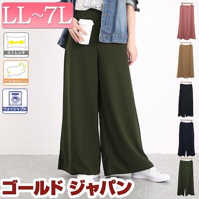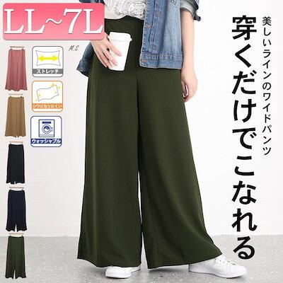 【即納】大きいサイズレディース ズボン パンツ ストレッチアムンゼンワイドパンツ ワイドパンツ ウエストゴム ストレッチ 伸縮 ロング 無地 オフィス 秋新作 春服 夏服 秋服 冬服 通年 LL 2L