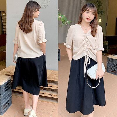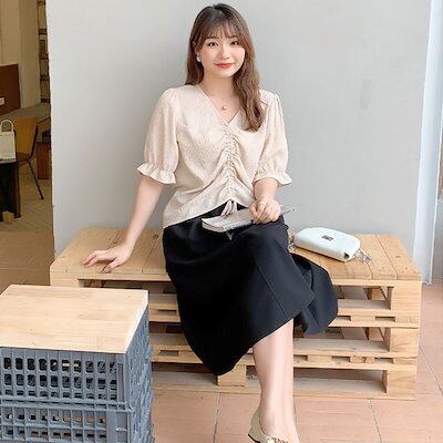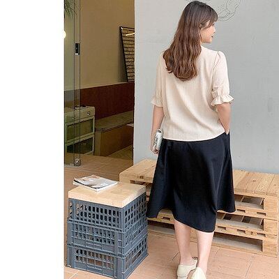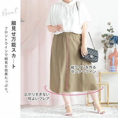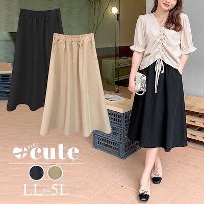 【即納】大きいサイズレディース ボトムス スカート フロントラインスカート 膝下スカート フレアスカート ロング ウエストゴム 無地 シンプル 通勤 韓国 夏新作 春服 秋服 LL 2L 3L 4L