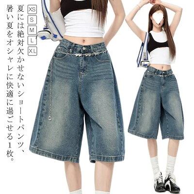 5分丈 デニム ショートパンツ レディース ボトムス デニムパンツ ハイウエスト ハーフパンツ 美脚 無地 春 夏 短パン 半ズボン 夏服 ジーンズ ゆったり 体型カバー カジュアル 美脚 美尻 短パ