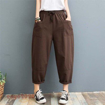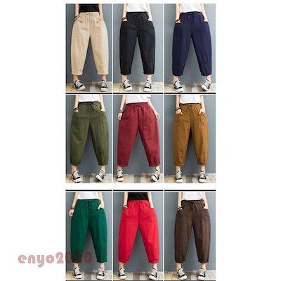 [最安値挑戦]!!パンツ ボトムス ワイドパンツ サルエルパンツ テーパードパンツ 綿麻 レディース カジュアル 無地 綿 麻 ポケット付き ゆったり リネン 大きいサイズ 夏
