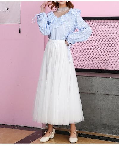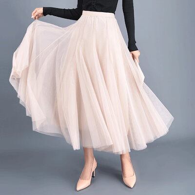 韓国ファッション 2025夏新作 フワフワロングスカート レディース ハイウエスト 大はば シースルー フェミニン