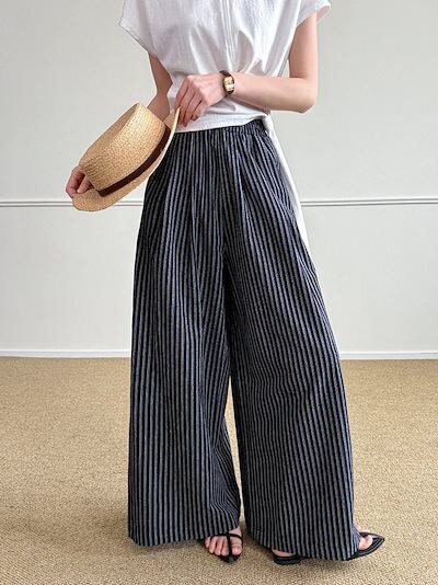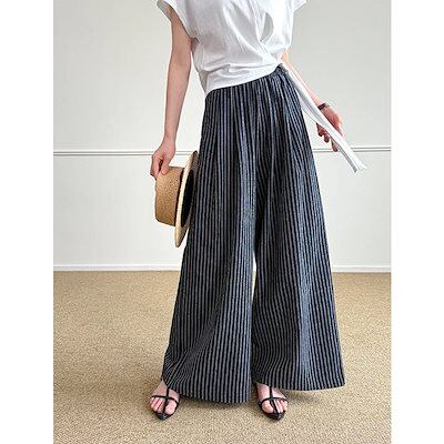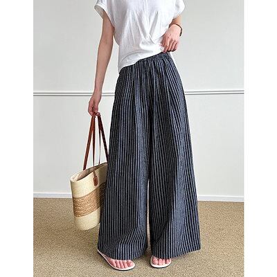 【最安値挑戦】レディース ロングパンツ ゆったり カジュアルパンツ ストライプ柄 シンプル 新作 ワイドパンツ 夏
