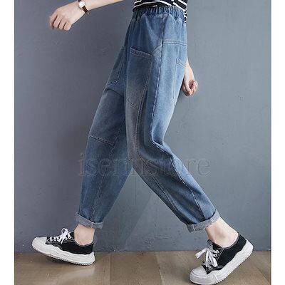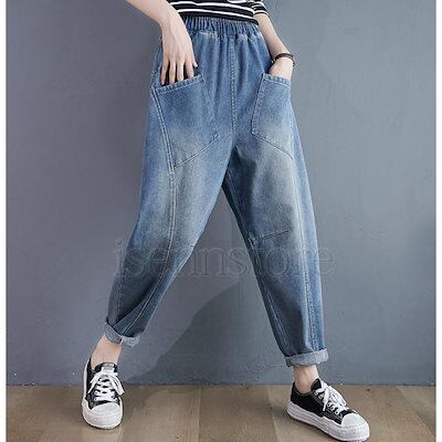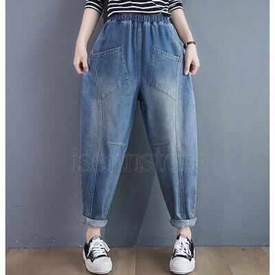 サルエルパンツ デニムパンツ ゆる ジーンズ 春夏 9分丈 レディース ボトムス ウエストゴム テーパードパンツ 女性用 大きいサイズ Gパン ヴィンテージ おしゃれ