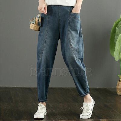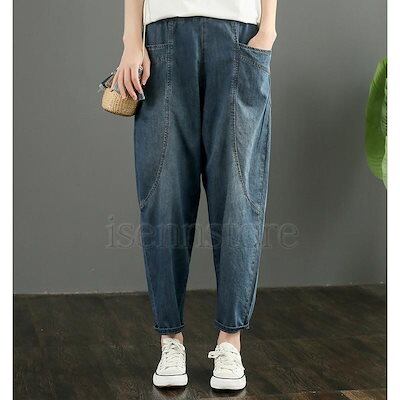 サルエルデニムパンツ レディース ゆる 9分丈 ワイドパンツ デニム ジーパン ジーンズ 春 夏 ボトムス 20代 30代 40代 大きいサイズ ウエストゴム ゆったり 着痩