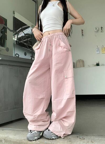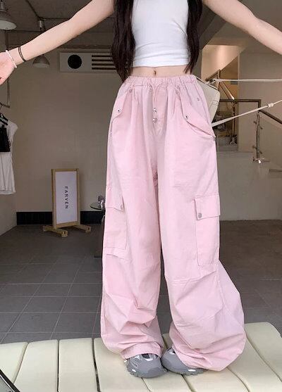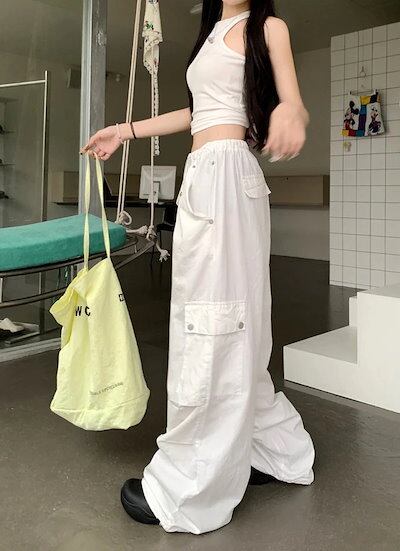 春夏パンツ カーゴパンツ ロング丈 ワイド ストレート ハイウエスト 美脚効果 脚長効果 細見え 夏 白 黒 おしゃれ かわいい 韓国ファッション レディース お出かけ