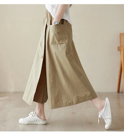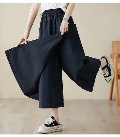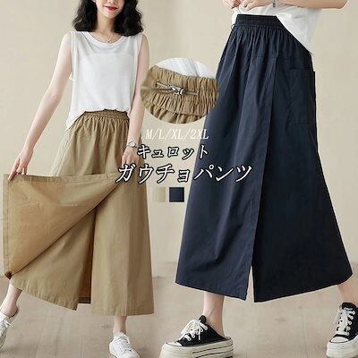 パンツ キュロット ガウチョパンツ レディース 夏 ボトムス スカート風 スカート ハイウエスト パンツ 大きいサイズ 無地 ウエストゴム 9分丈 巻きスカート スカーチョ きれいめ オシャレ ゆった