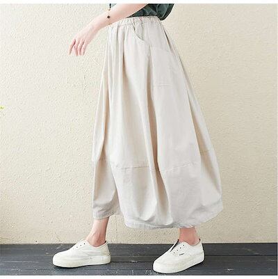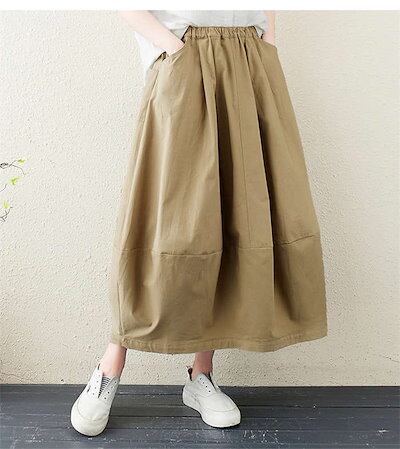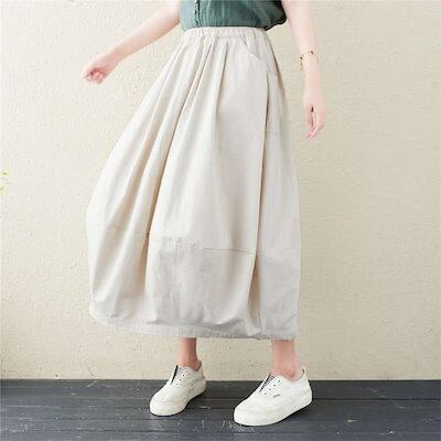 スカート ロング 春 秋 きれいめ バルーンスカート ロング ベージュ レディース 春 バルーン スカート ロング スカート ランタン スカート 秋冬 ウエストゴム 大人 ボトムス カジュアル シンプ